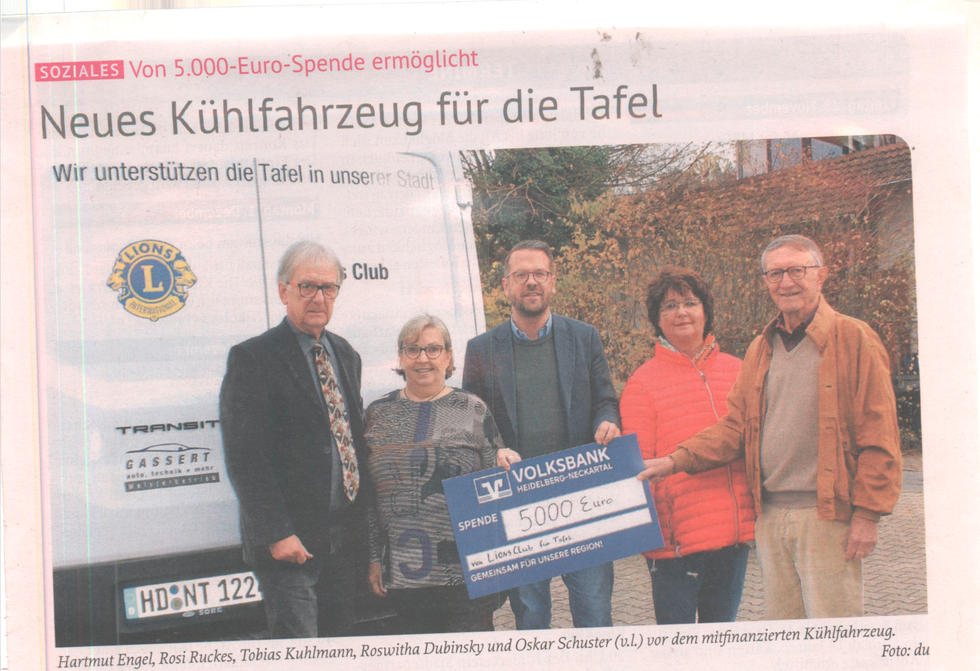 Mit 5.000 Euro hat sich der Lions Club Neckargemünd an der Beschaffung eines neuen Kühlfahrzeugs für dieTafel beteiligt.